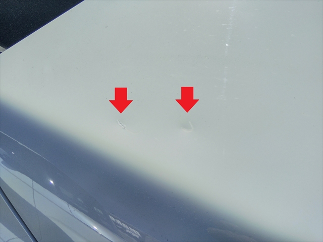 状態を確認すると、ボンネット右上に小さなヘコミが2カ所あります。