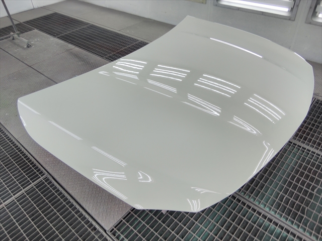 メルセデスベンツ・GLAのボンネットはアルミ製なので無理に叩いたり、高温を与えりすることは、アルミ素材その物の組織に影響を与えてしまいます。今回はヘコミが非常に小さく浅かったため、パテで形状を整え修理しました。