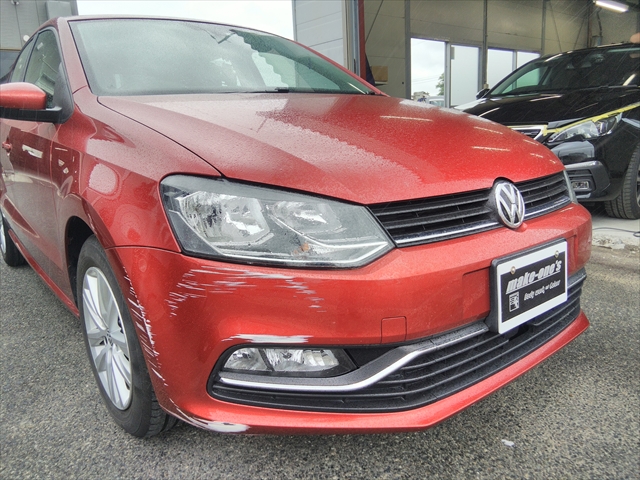 新潟市江南区のお客様から、フォルクスワーゲン・ポロのフロントバンパー修理塗装を承りました。