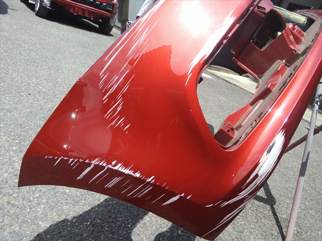 画像はありませんが、その後、修理部分に2液硬化型サフェーサーを塗装して、近赤外線短波乾燥機で強制乾燥を行い修理部分をしっかりとシールします。