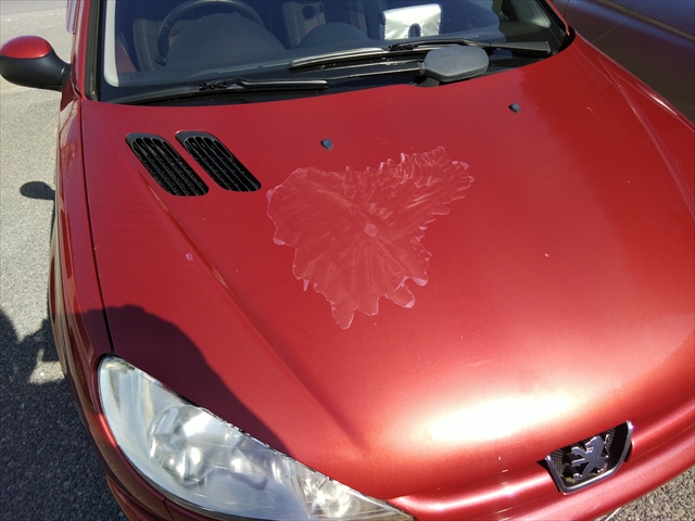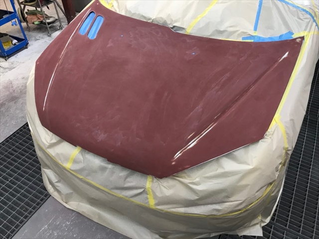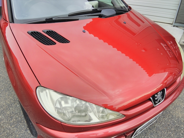 新潟市江南区のお客様のプジョー・206を、経年劣化によるボンネットのクリヤーコート剥がれの為、修理塗装でお預かりしました。