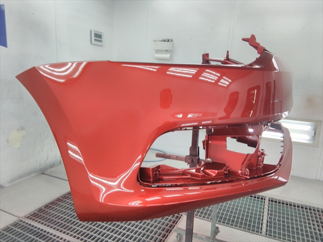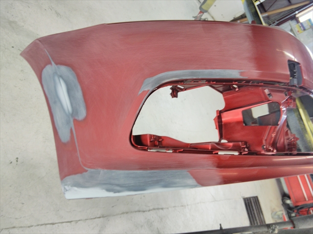 オーナー様は、金額重視ではなくきちんと修復される仕上がりがご希望でしたので、今回はフロントパンパーの脱着・分解を行い修理塗装する方法で作業に取り掛かりました。