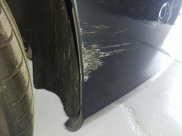 オーナー様はバックで駐車場に停車する際、左後方にあったブロック塀に気付かず誤って左リヤバンパーの一部を接触させてしまいました。
